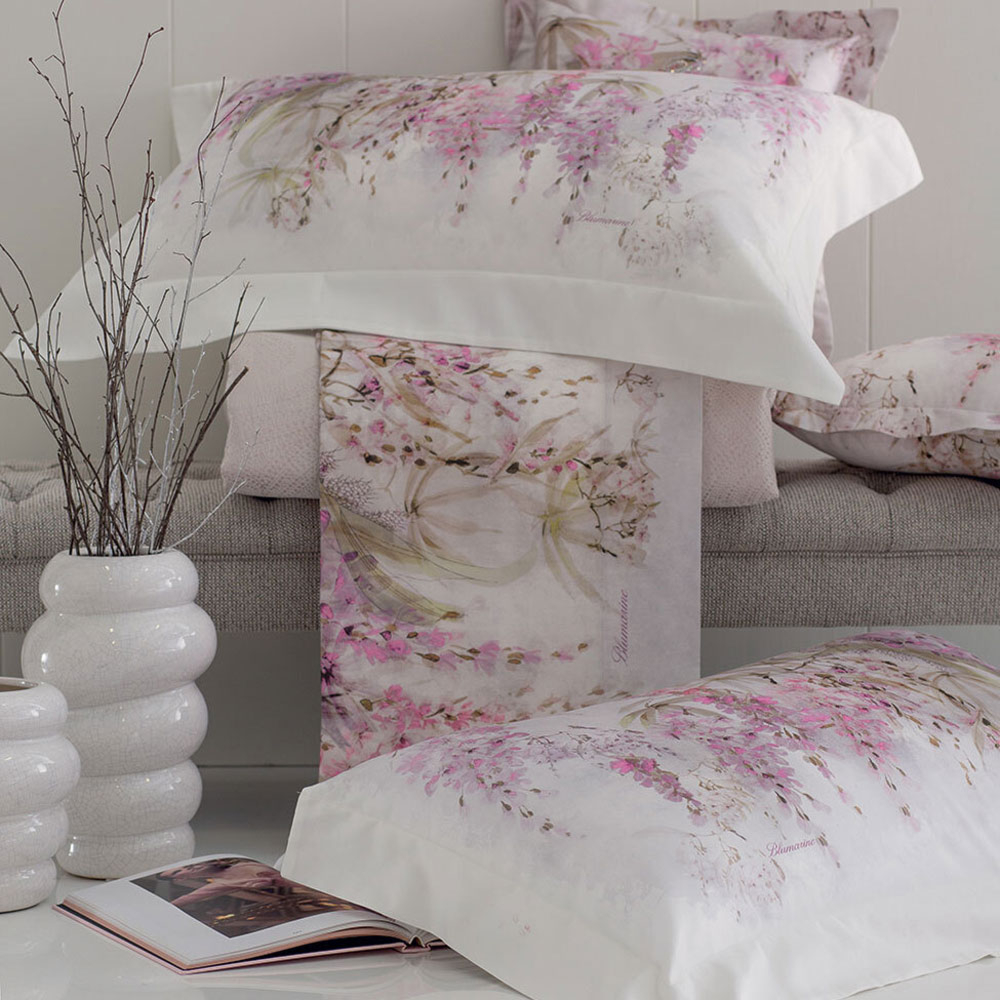 Completo letto lenzuolo con stampa piazzata su raso di cotone 300TC, lenzuolo sotto in raso di contone tinta unita bianco.