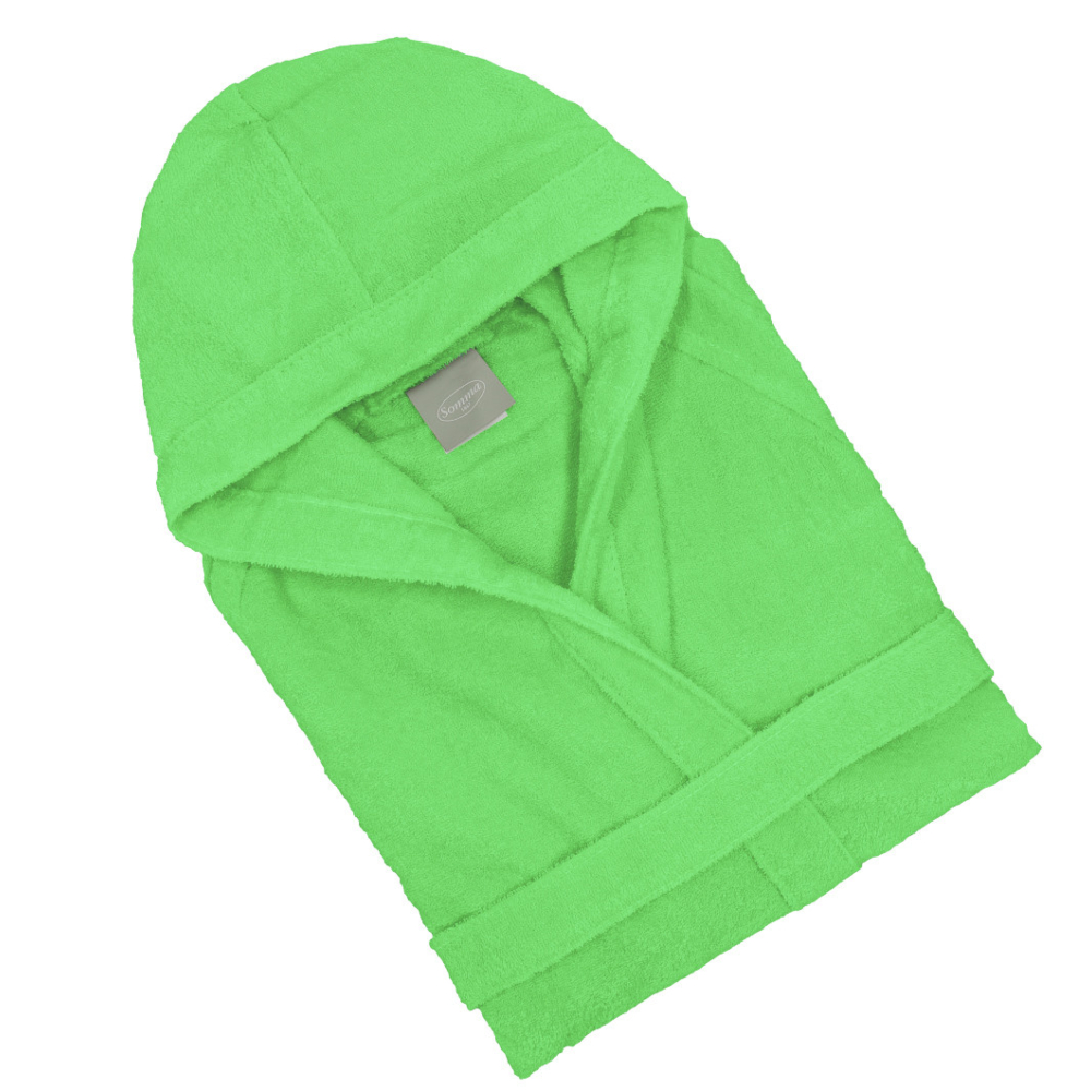 Accappatoio con cappuccio realizzato in leggera microspugna di puro cotone idrofilo da 240 gr/mq, in tinta unita.