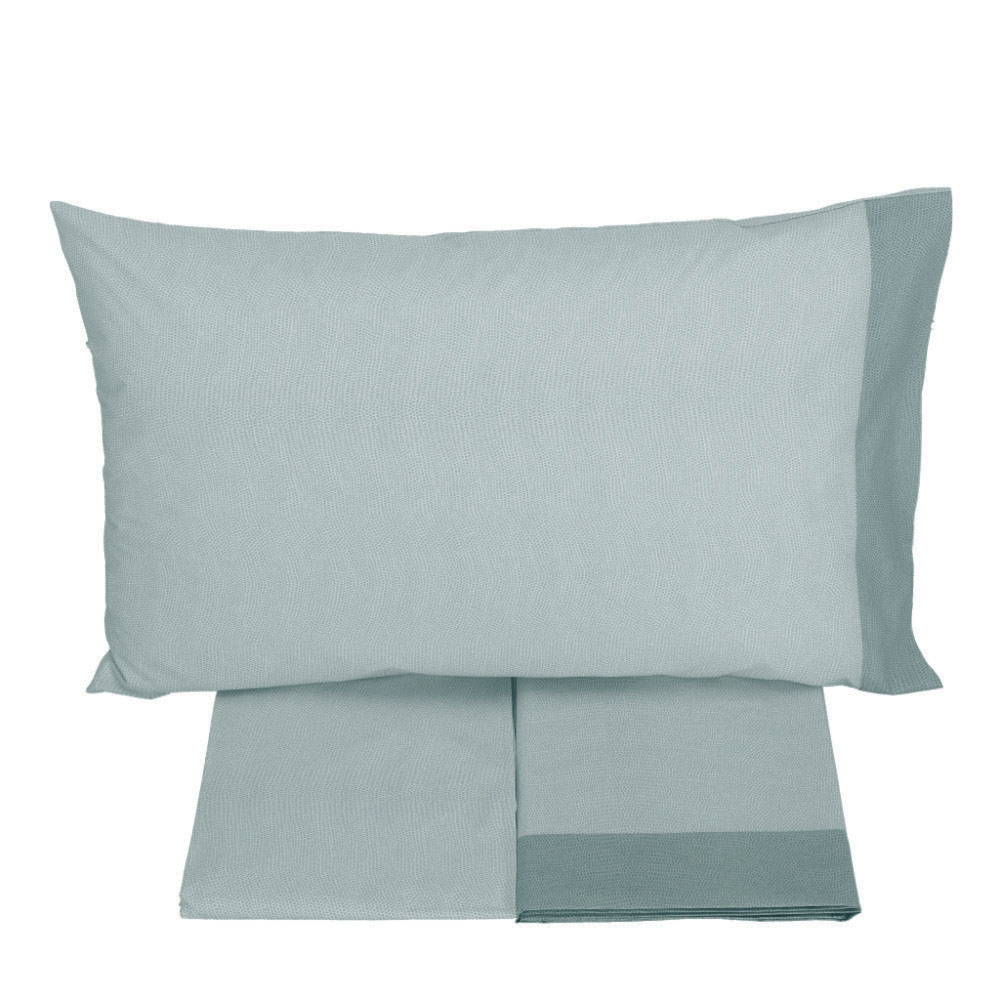 A bordo della riversa e della federa è applicata una balza stampata in tinta di colore più acceso.