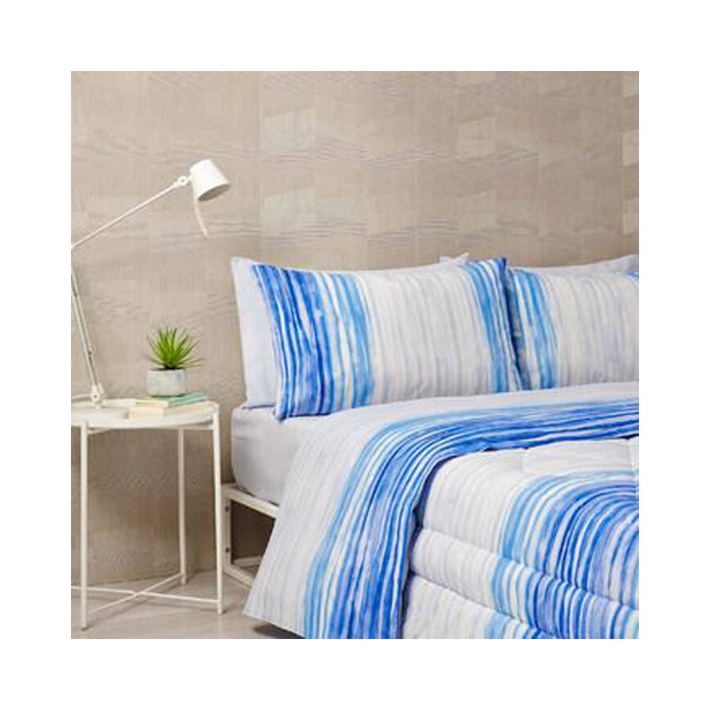 Il sopra e le federe a sacco hanno una stampa con un disegno con eleganti righe larghe acquarellate, mentre il sotto presenta una stampa a righe sottili.