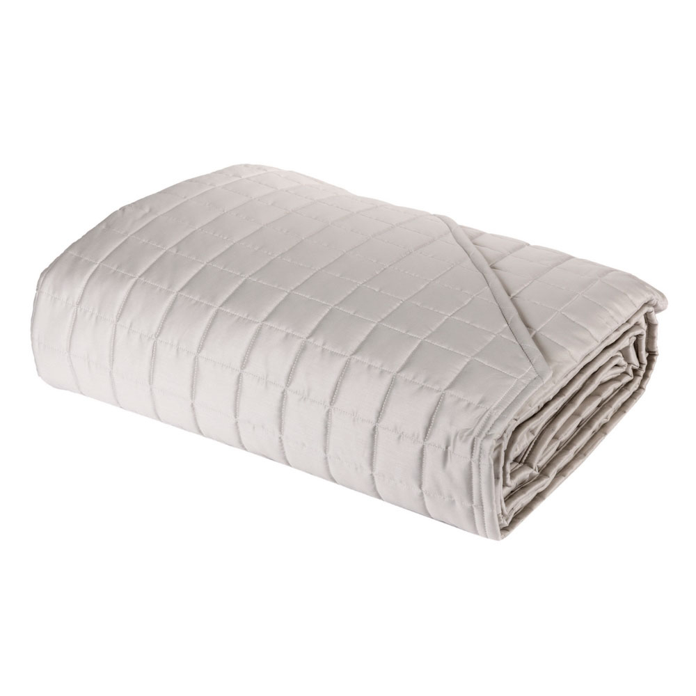 Copriletto trapuntato matrimoniale maxi realizzato in raso 300TC di puro cotone. Trapuntato a capo, rifinito a mano con due angoli sagomati.