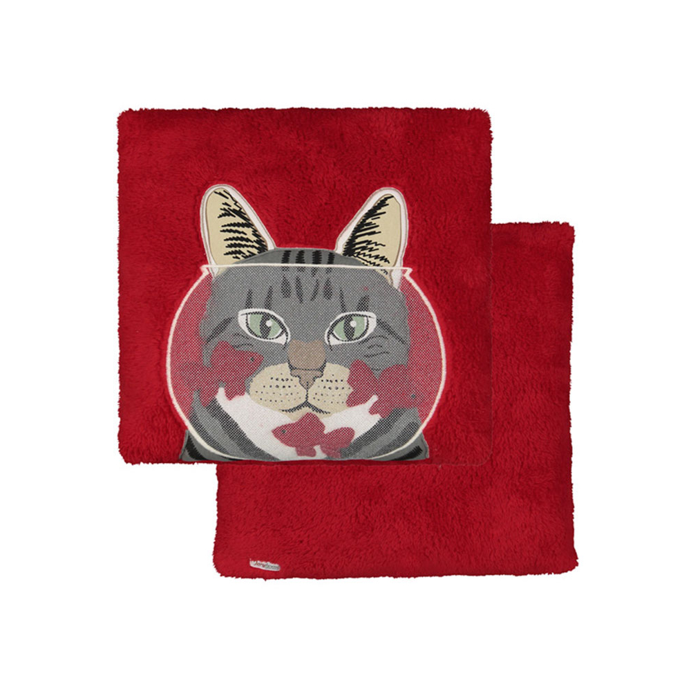 Cuscino arredo peloso bussy con applicazioni con interno e sfoderabile con una comoda zip, per consentirne il lavaggio, con disegno ricamato gatto.