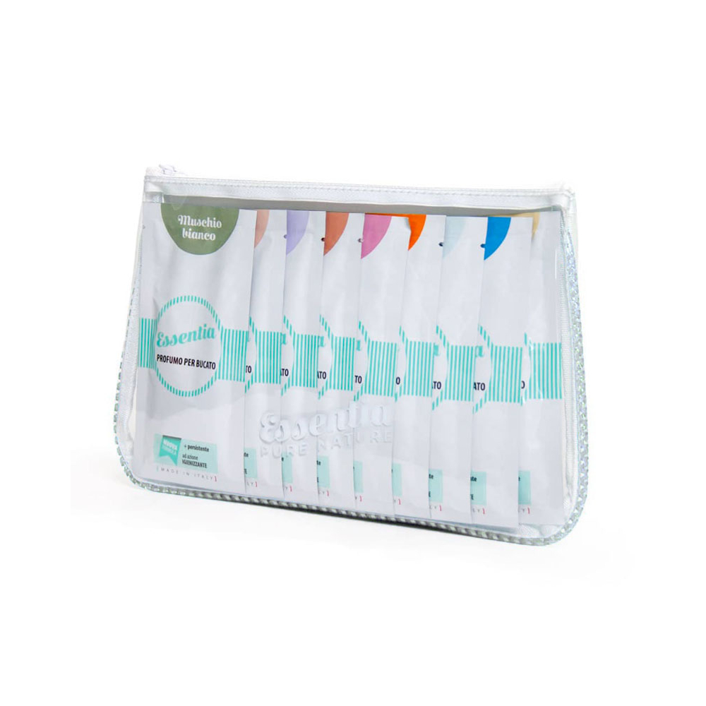 10 Bustine Monodose (20 ml) di Profumo per Bucato, nelle seguenti fragranze: Agrumi e Zagara, Argan, Felce, Fior di Cotone, Fior di Loto, Jasmin, Lavanda, Muschio Bianco, Talco e Vaniglia e Cashmere.
