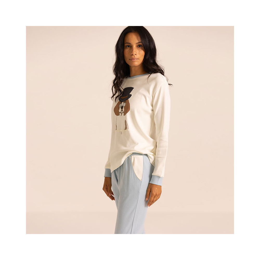 Pigiama donna invernale con maglia girocollo e pantalone morbido.