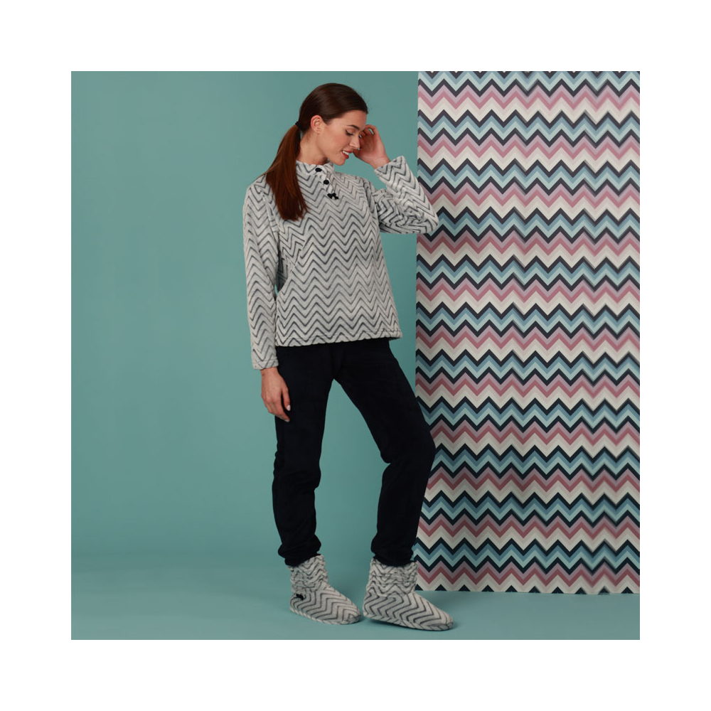 Pigiama donna con manica lunga e pantalone lungo in pelliccetta laserata con disegno geometrico.