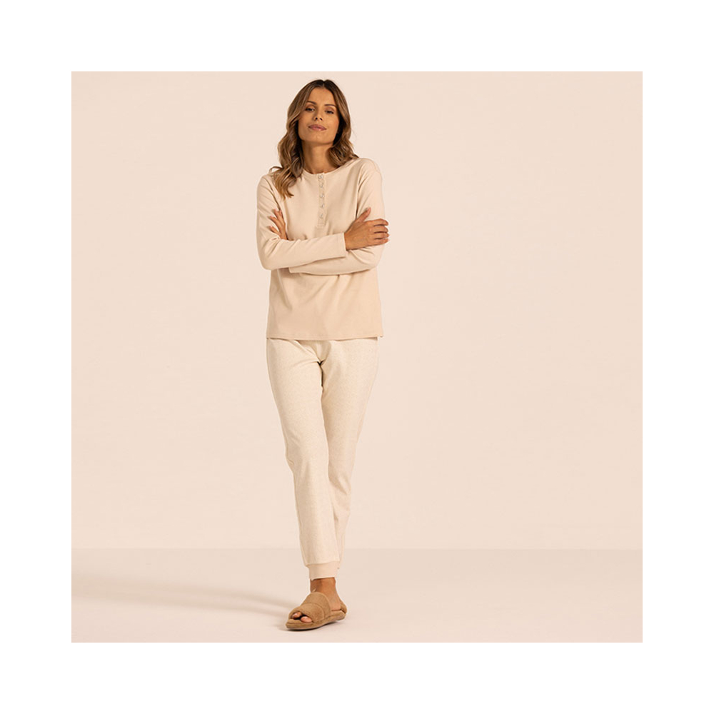 Pigiama donna invernale con maglia a maniche lunghe abbottonata e pantalone lungo.