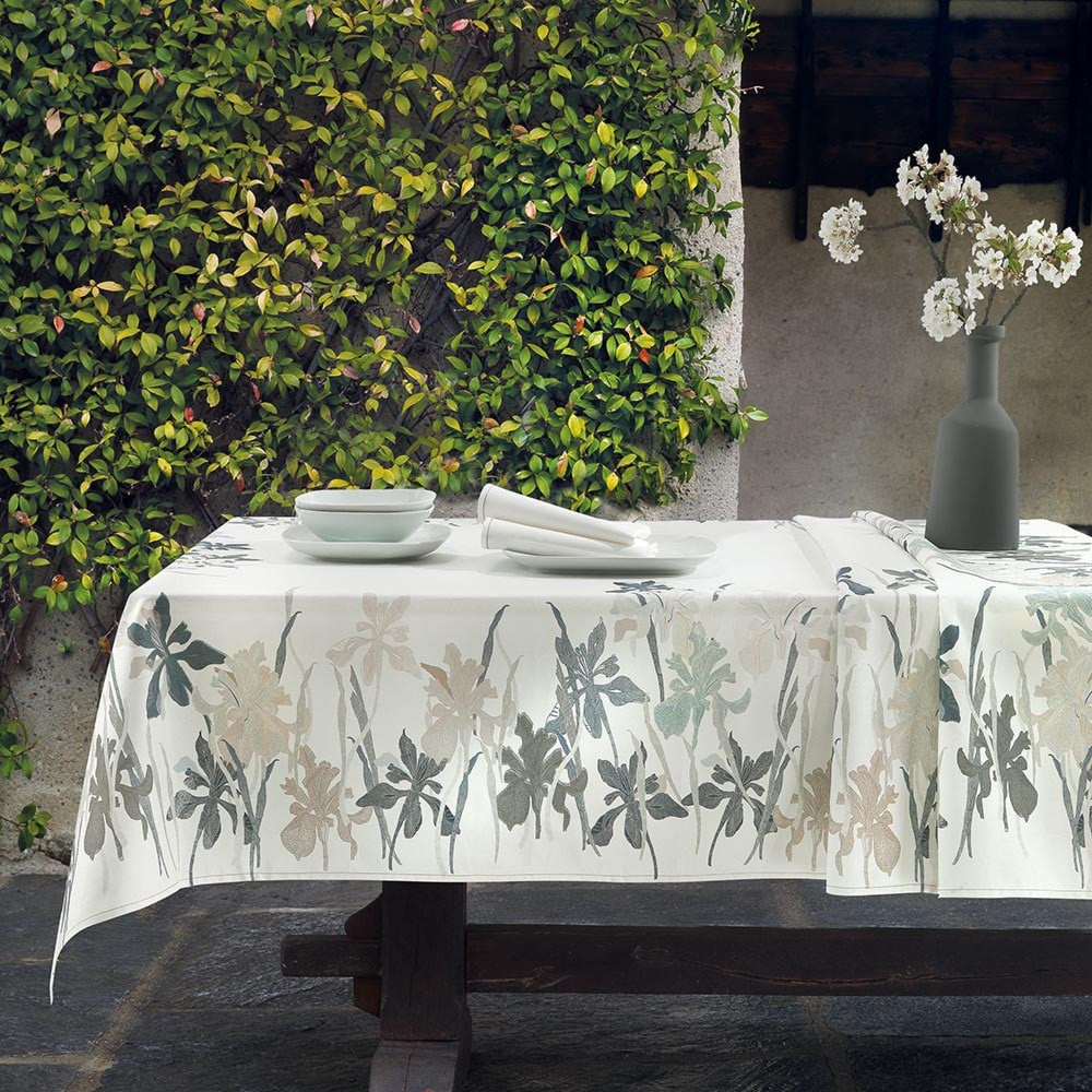 Servizio tavola tovaglia rettangolare con tovaglioli stampata con tecnica digitale su panama di puro cotone. Motivo piazzato.