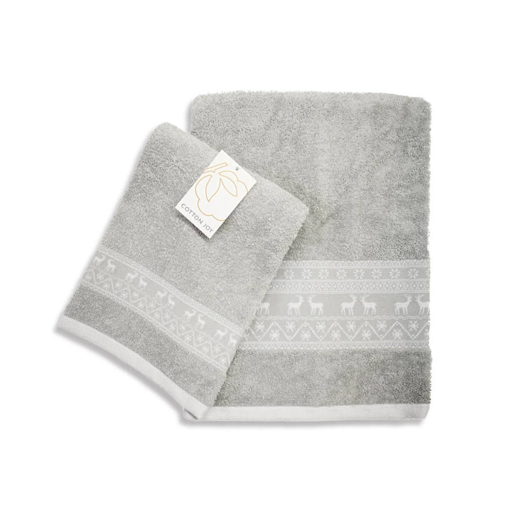Set 1+1 coppia asciugamano Cotton Joy Natale Grigio FAWN