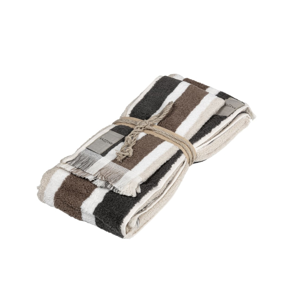 Set 1+1 coppia asciugamano Fazzini Righe Corteccia-Beige GRADAZIONI