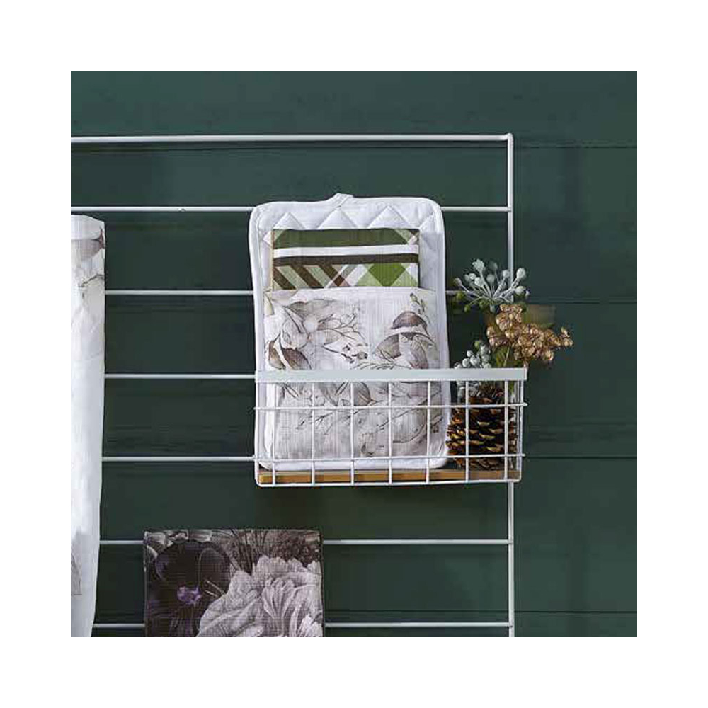 Maxi presina trapuntata e asciugapiatti in misto lino. Stampa digitale su fondo bianco, orlo cordino.