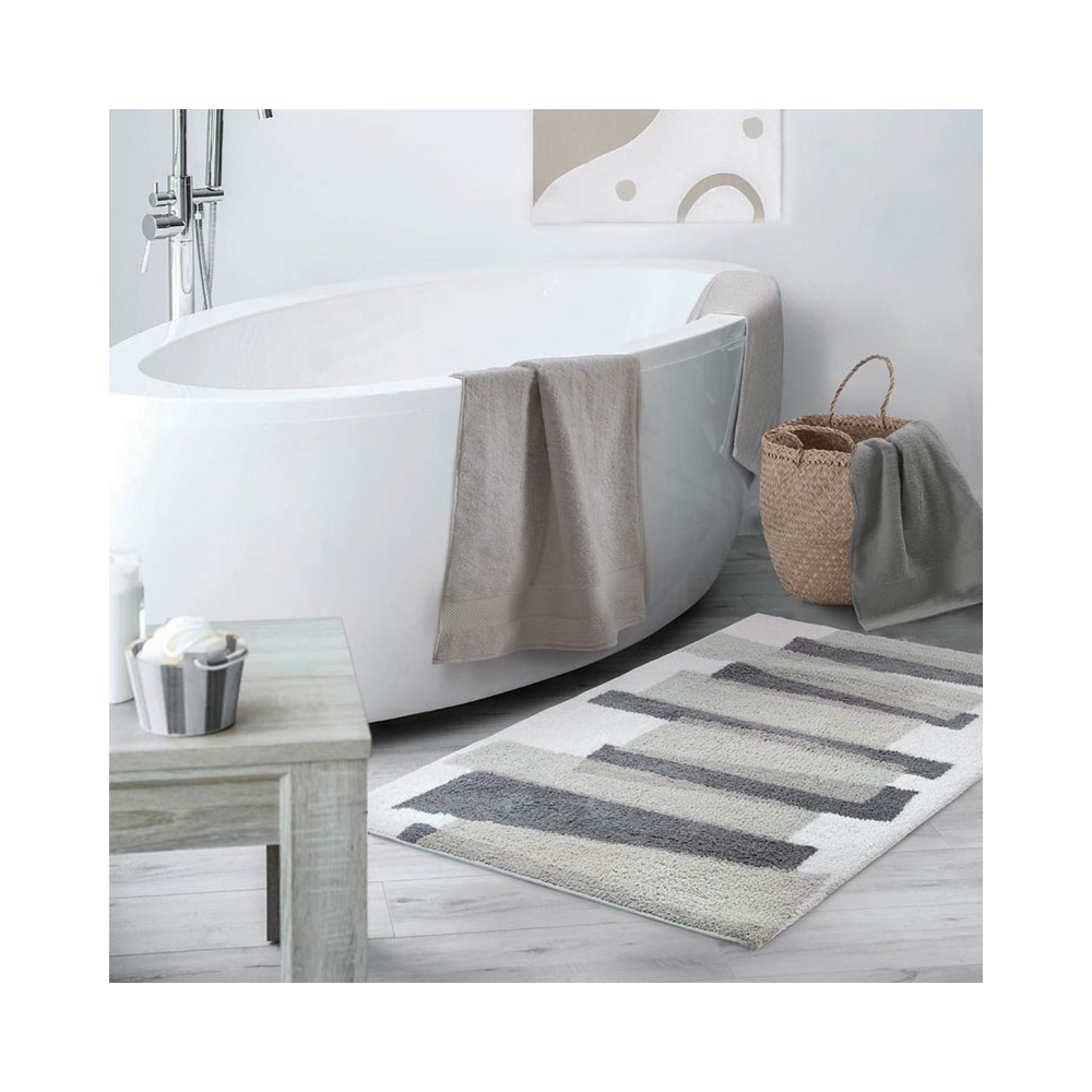 Realizzato in tuft in puro cotone, jacquard tinto filo con pratico retro antiscivolo, dalla mano morbidissima e dalla facile manutenzione.