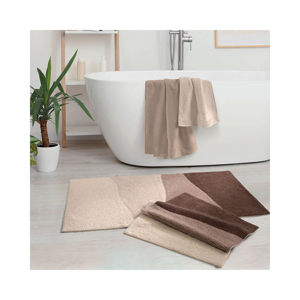 Un movimento sinuoso con Dune, il nuovo tappeto bagno in grado di portare un tocco decorativo e un morbido comfort al tuo bagno.