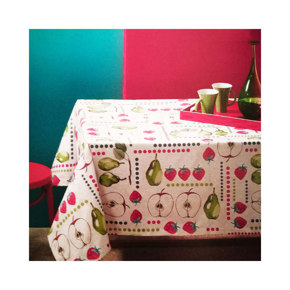 Tovaglia antimacchia sempre pulita stampata su panama di puro cotone.