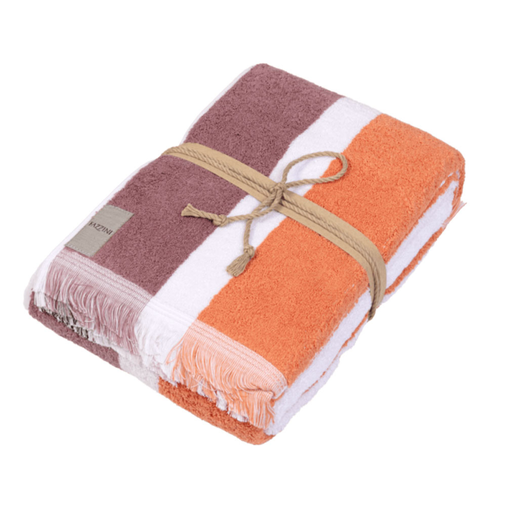 Telo doccia/mare in spugna a righe realizzato in cotone di qualità tinto in filo.